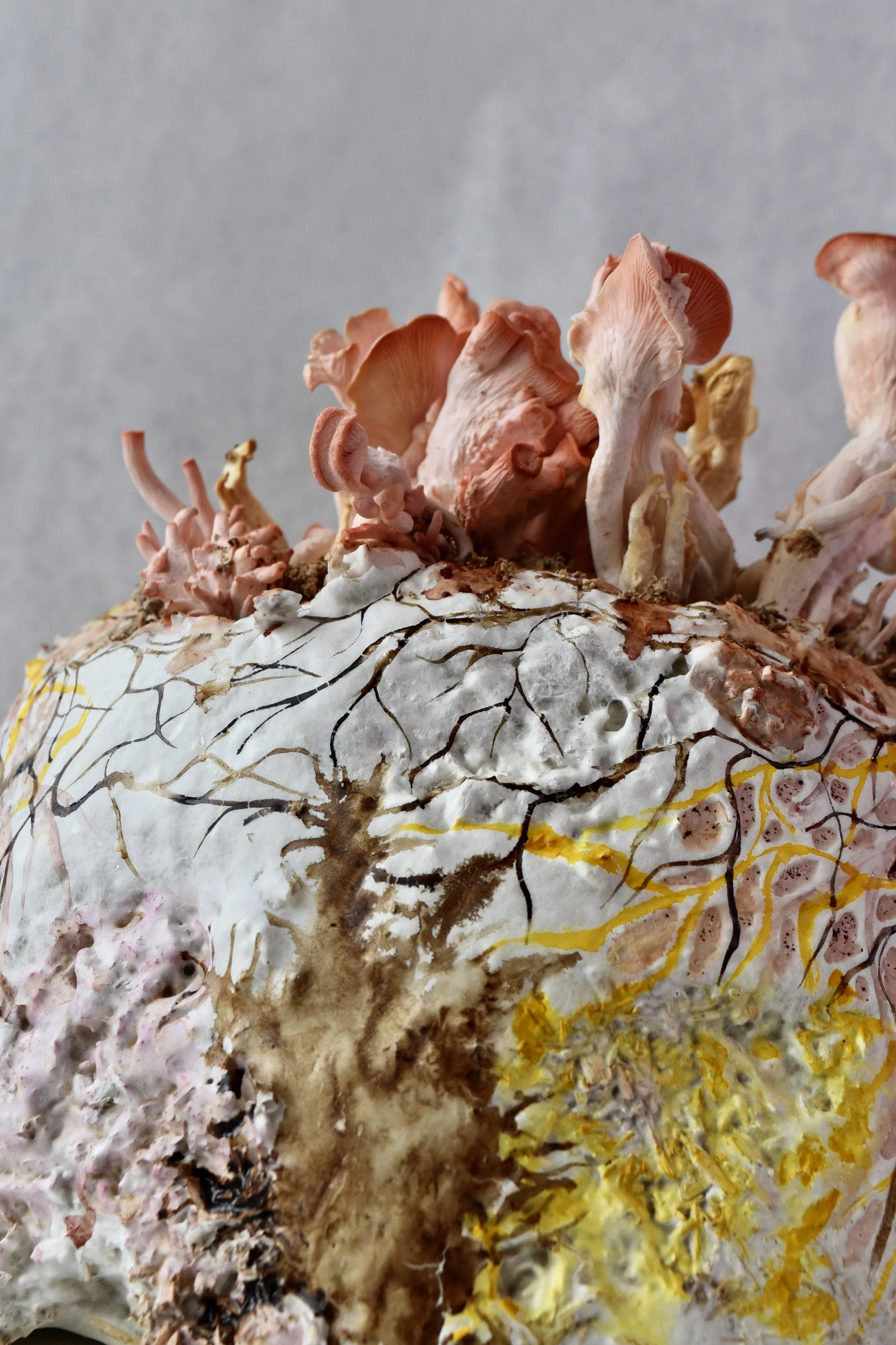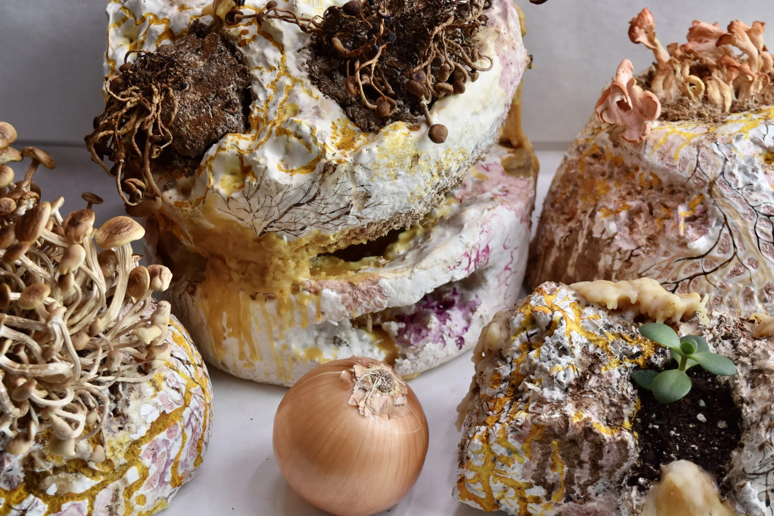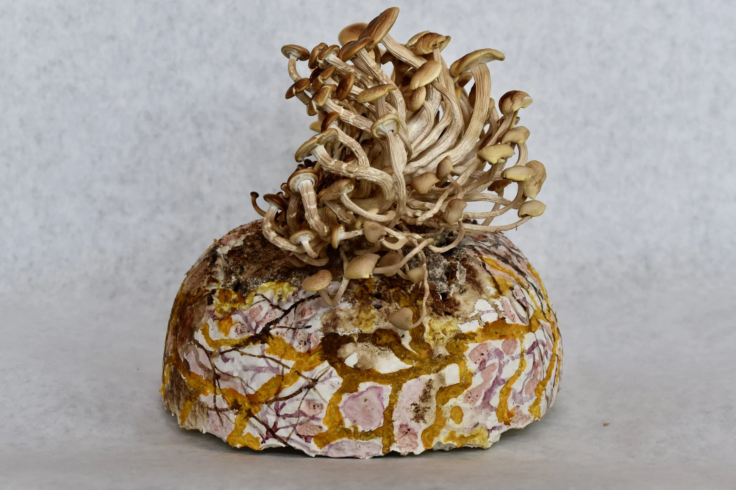 This work is part of a process-oriented project that explores a circular systems approach to living sculpture with an emphasis on de-centering the human position and allowing the central actor, fungi, to shape the work.