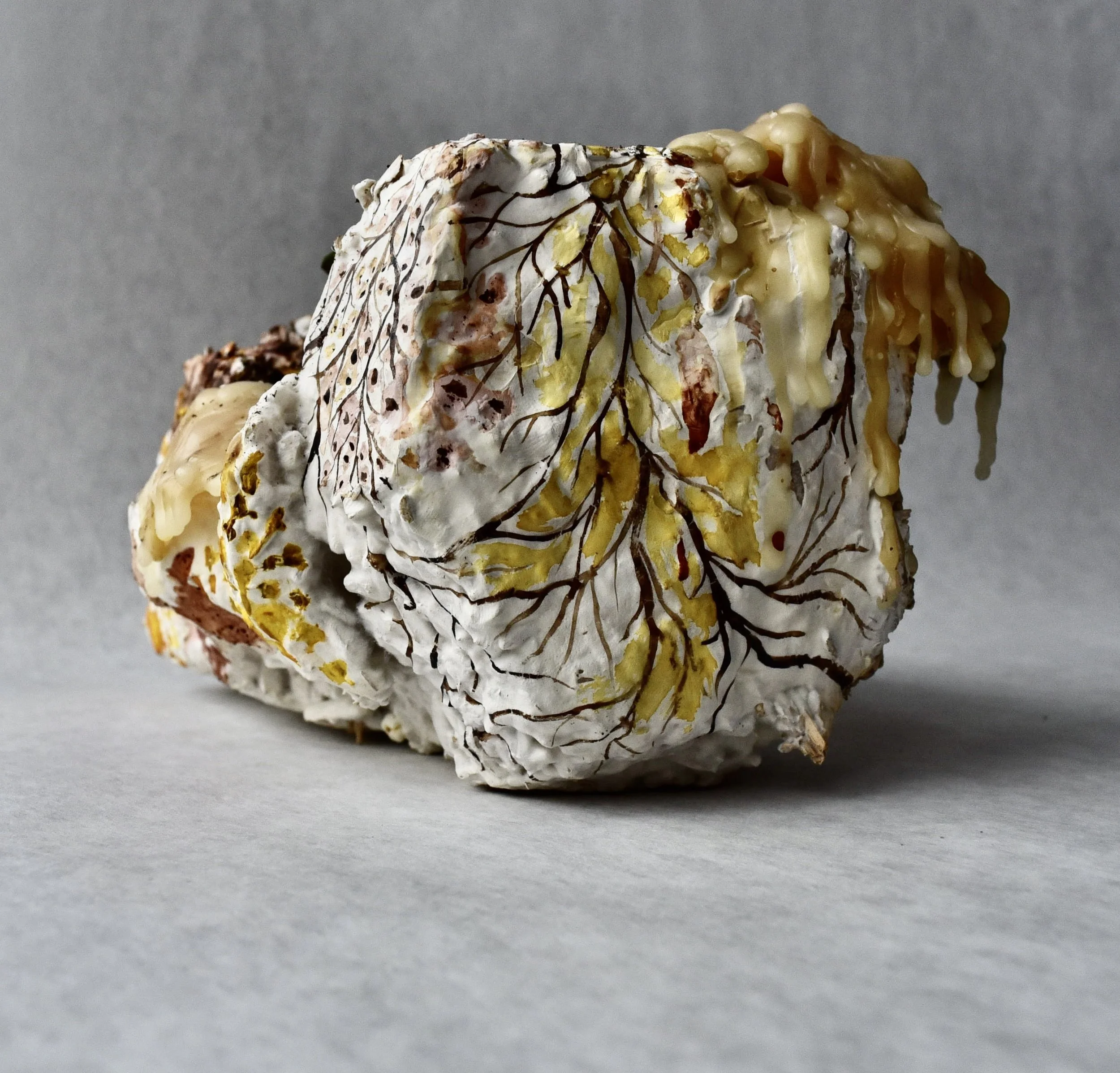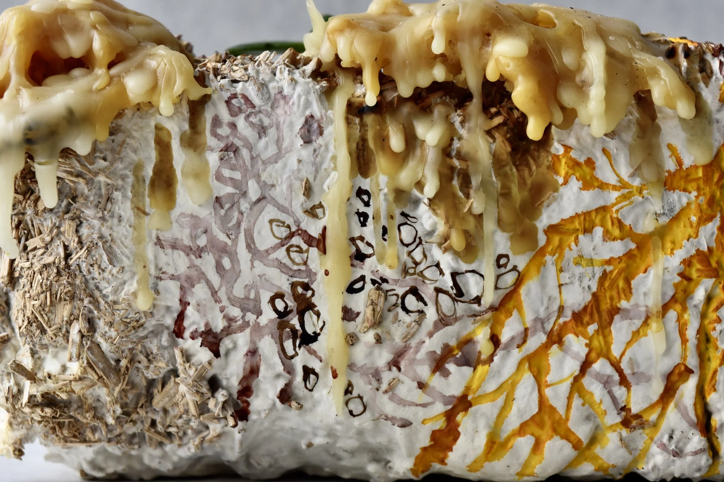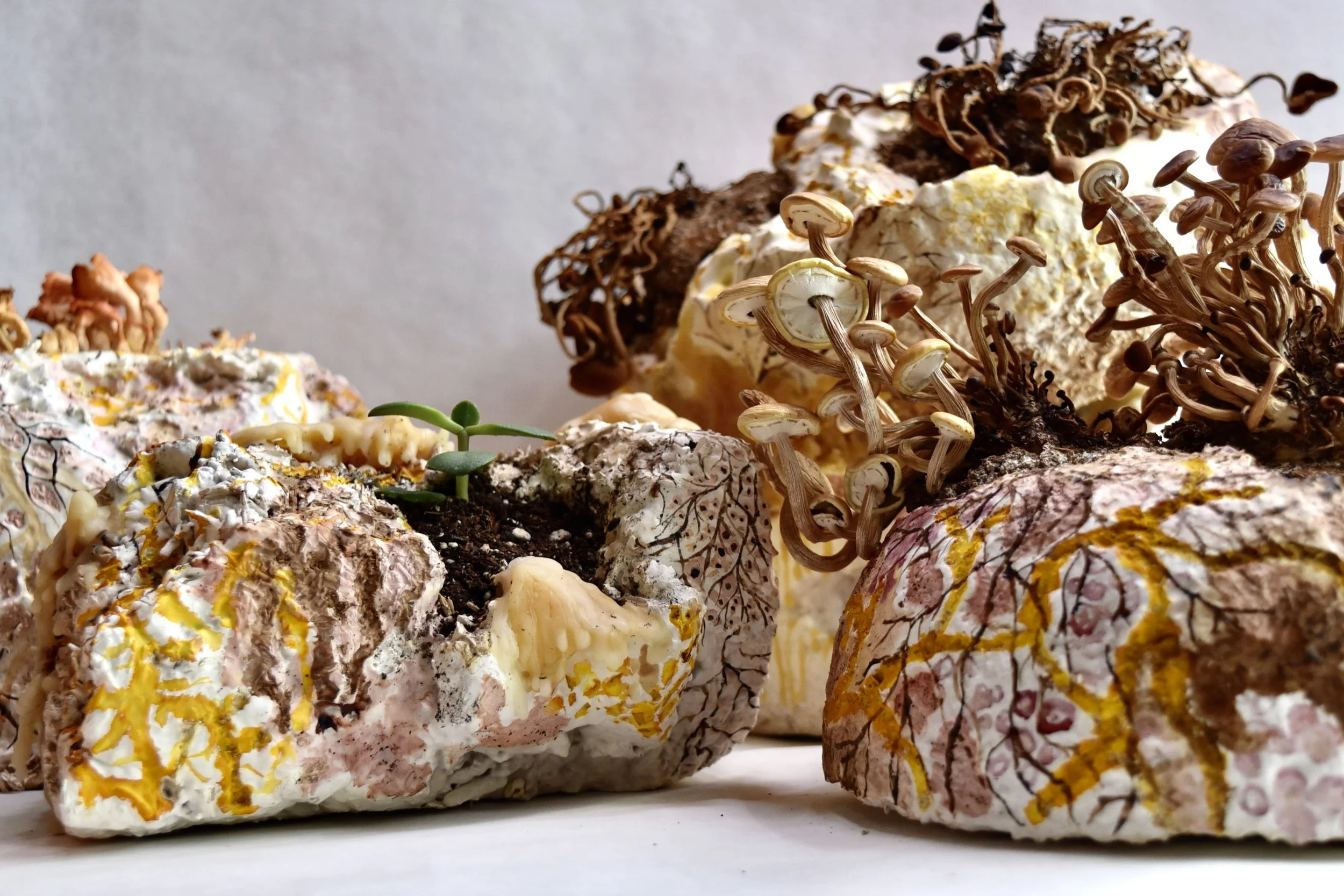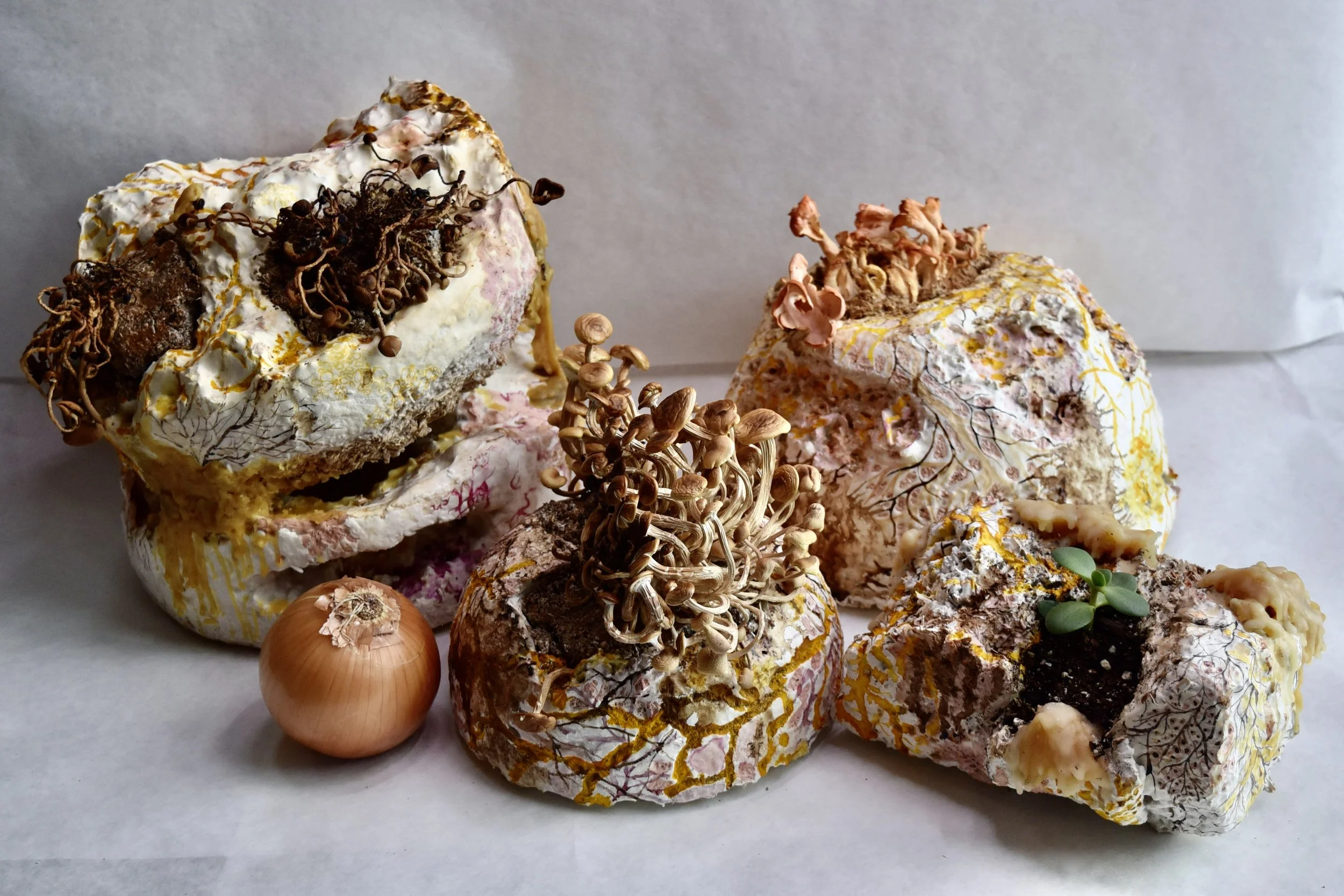 This work is part of a process-oriented project that explores a circular systems approach to living sculpture with an emphasis on de-centering the human position and allowing the central actor, fungi, to shape the work.