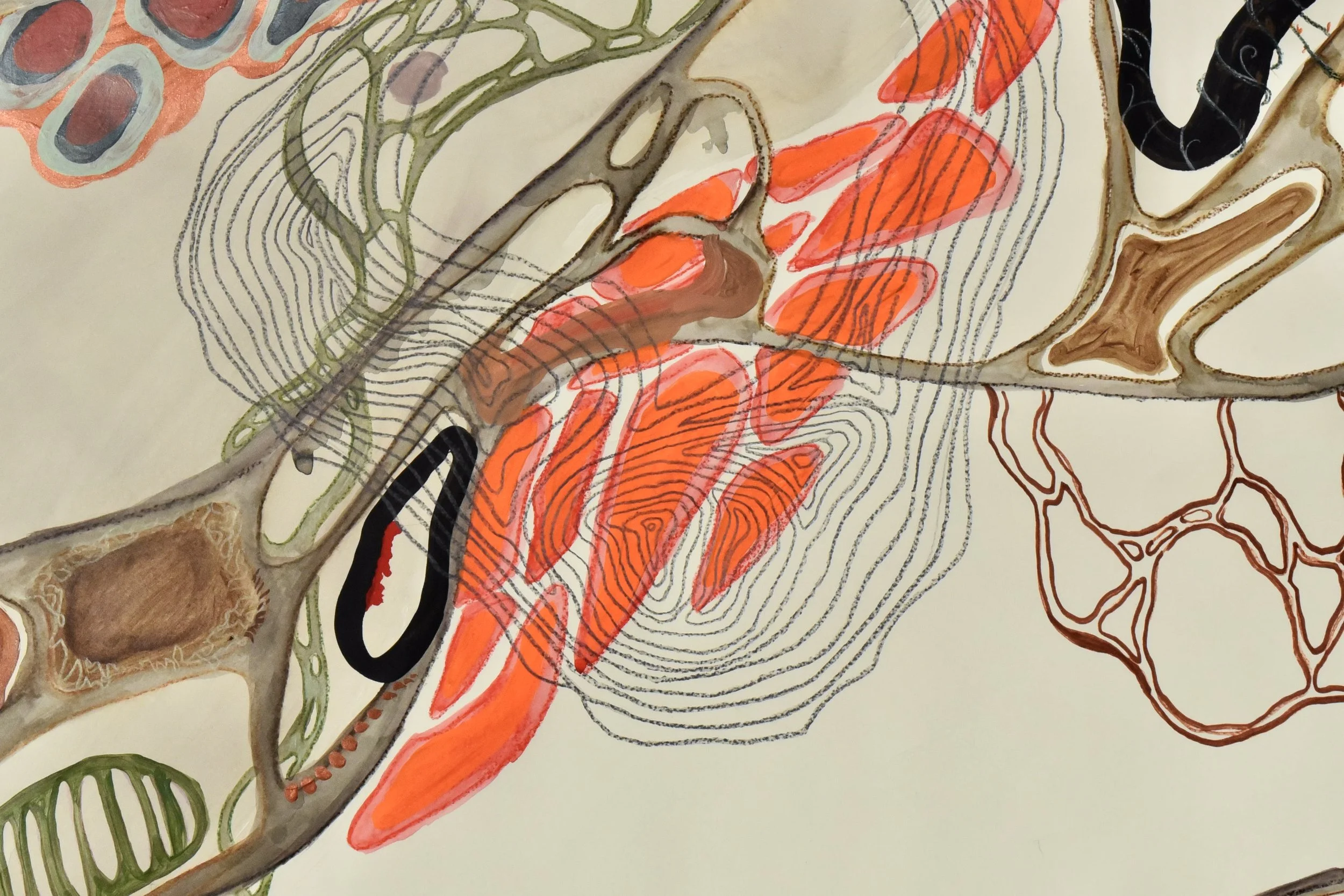 This large-format drawing grew slowly over a period of two years. In it, I explored the visual language I used to understand the layers of communication and connection that form our world.